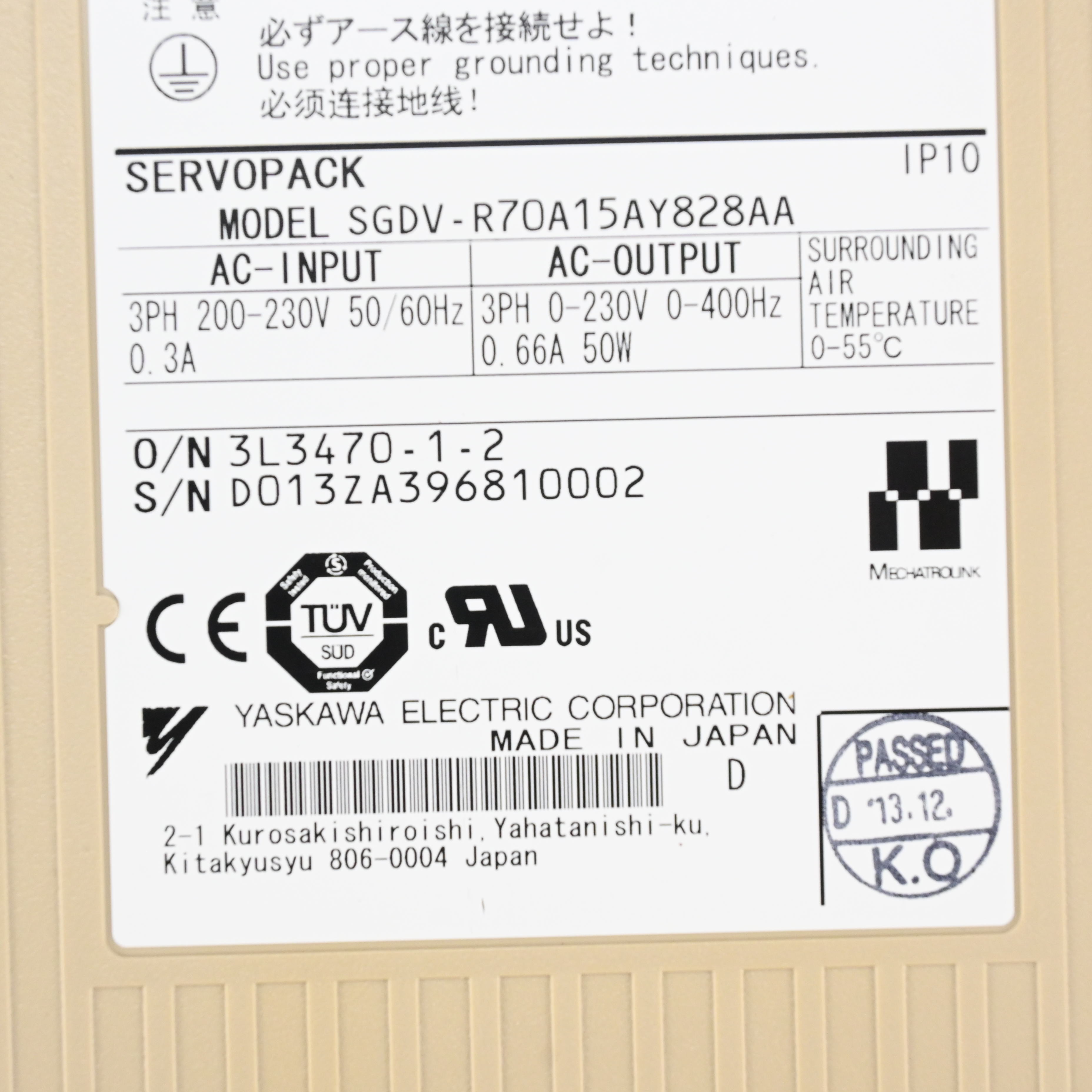 SGDV-R70A15AY828AA サーボパック YASKAWA