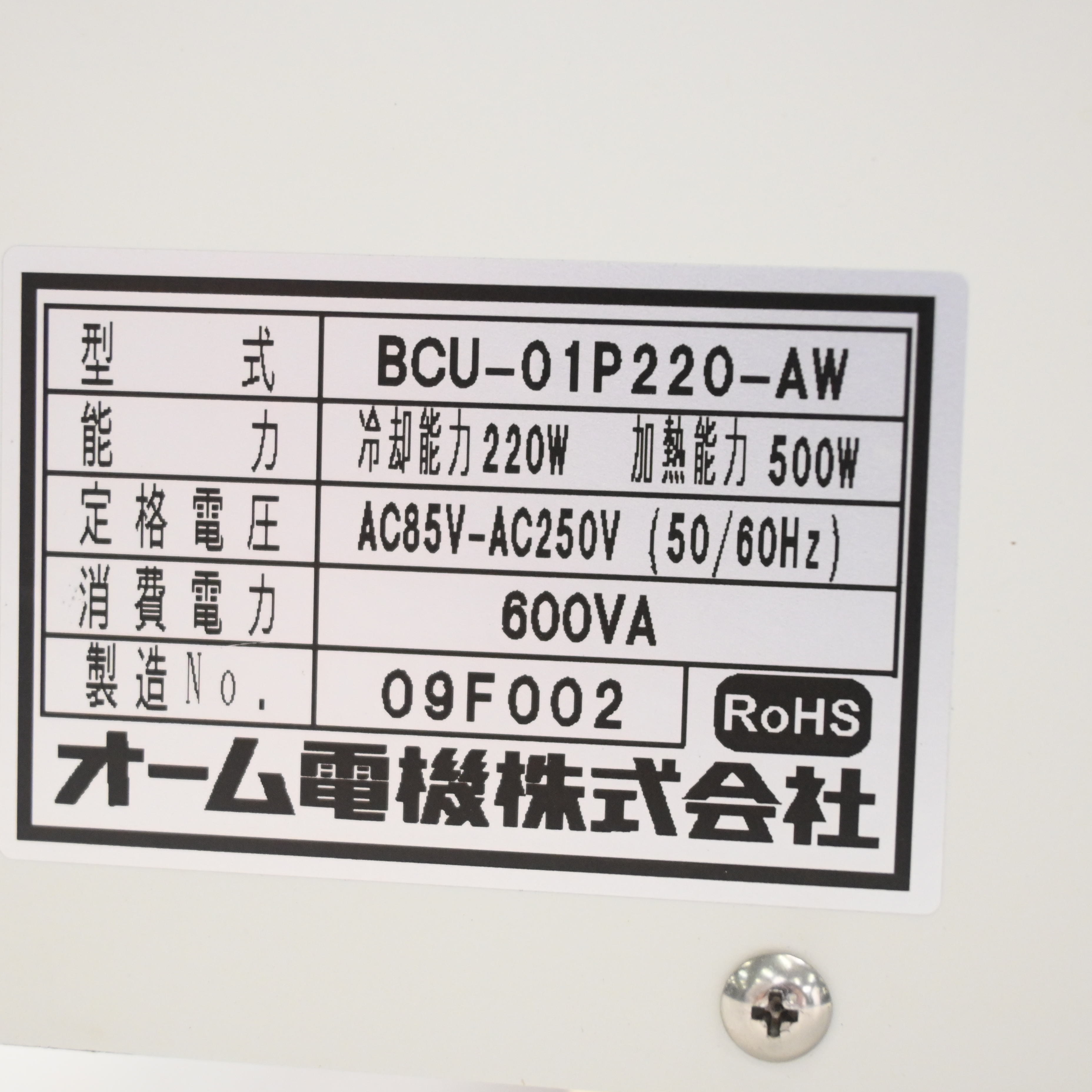BCU-01P220-AW ボックスチラー オーム電機