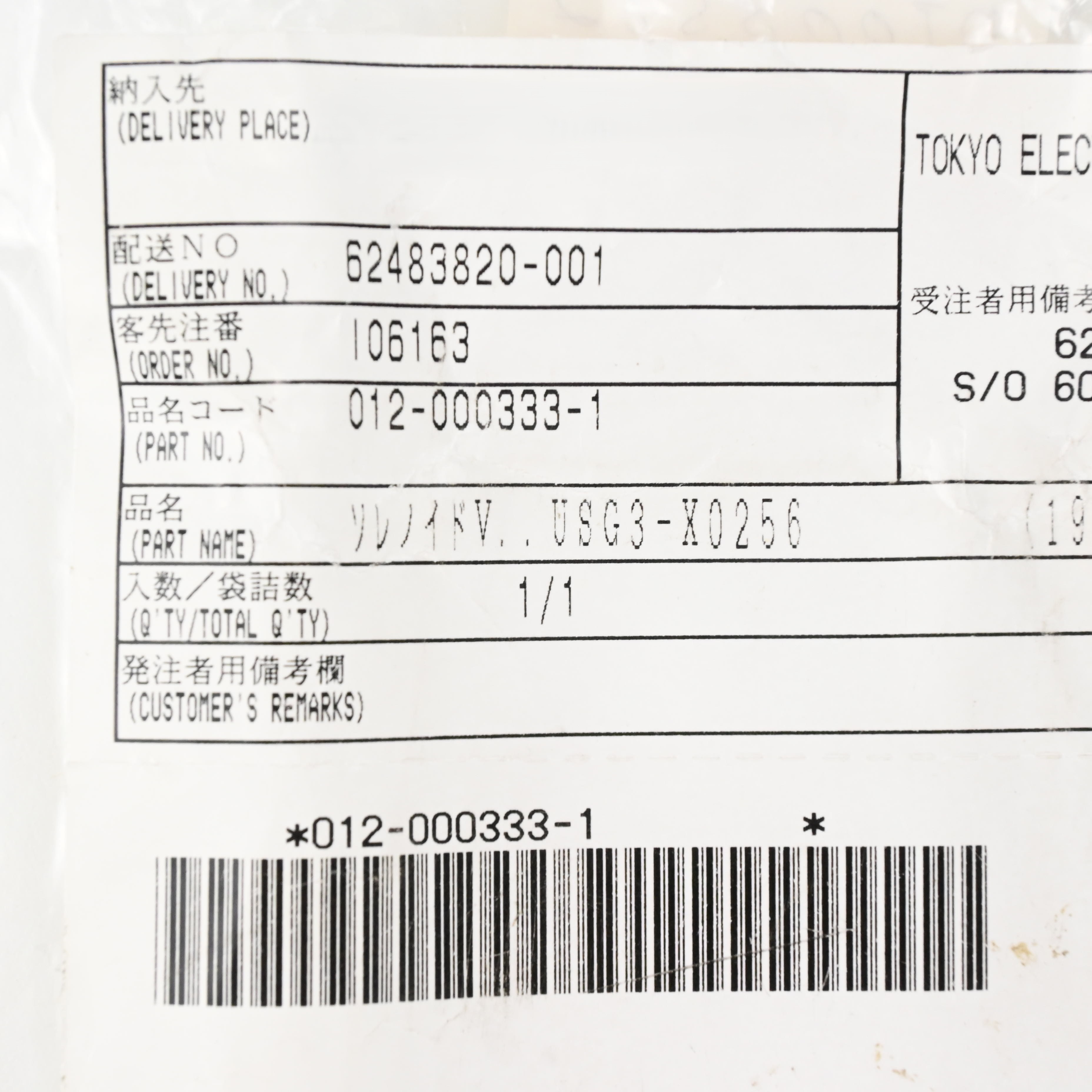 012-000333-1 ソレノイドバルブ 東京エレクトロン (TEL)