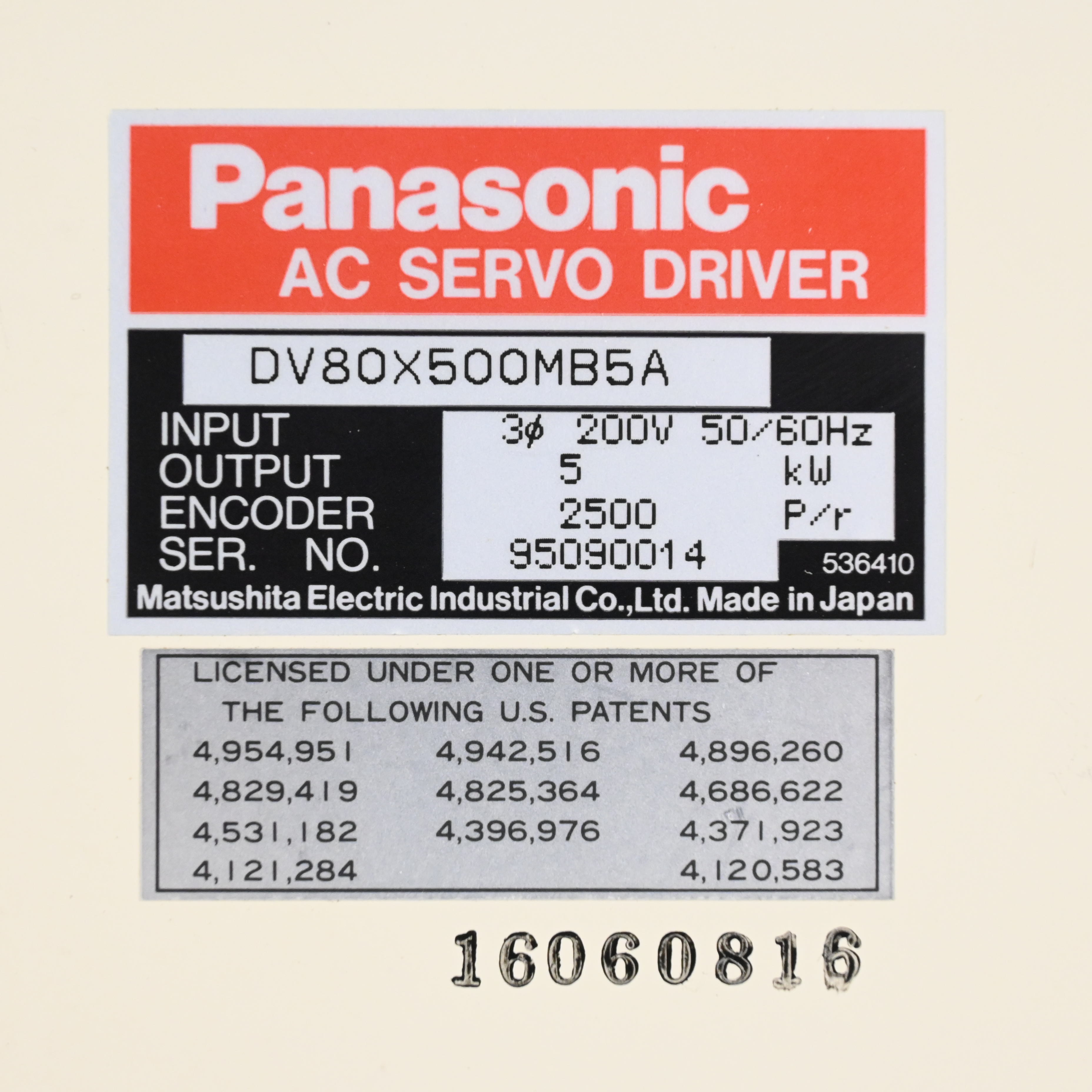 DV80X500MB5A ACサーボドライバー Panasonic