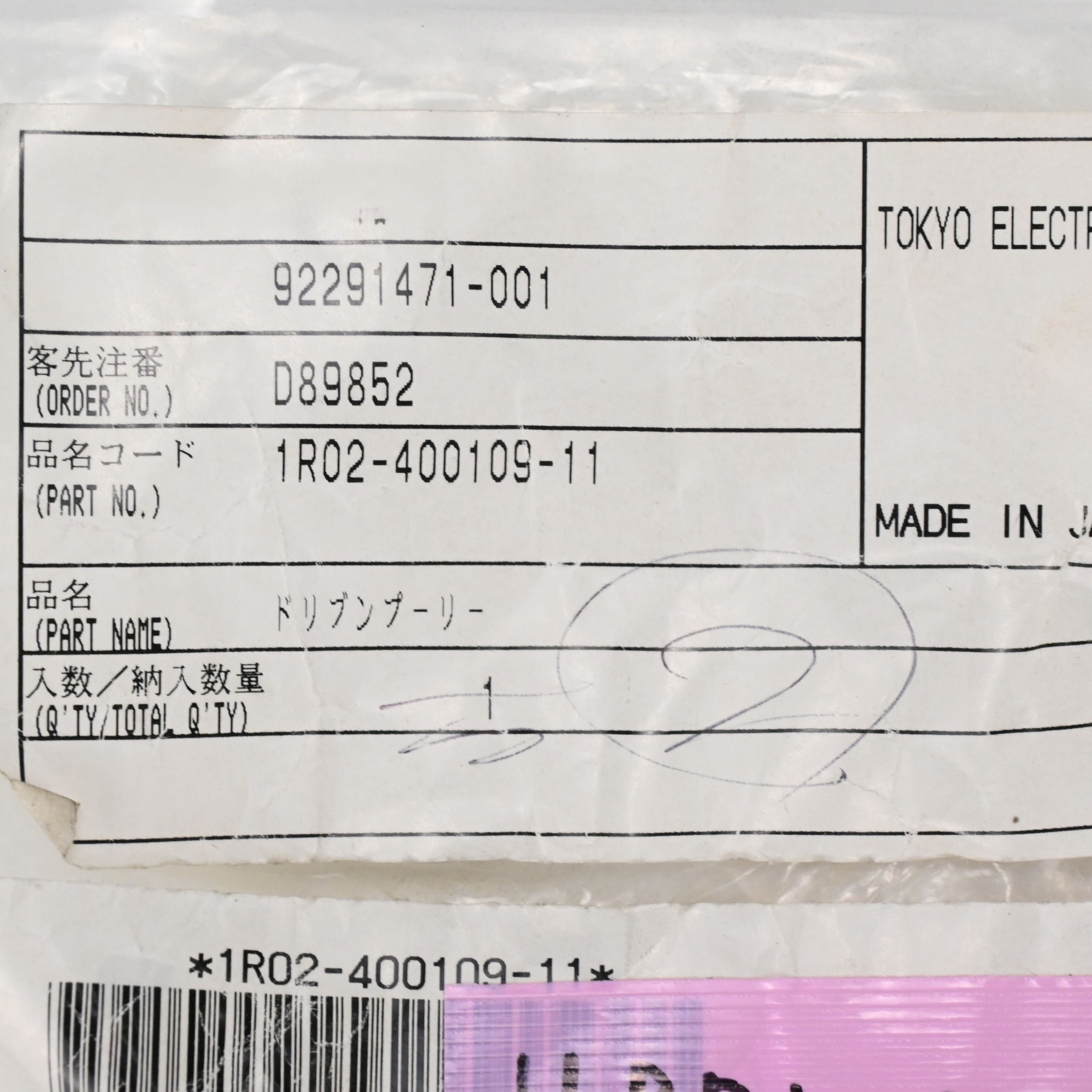 1R02-400109-11 ドリブンプーリー 東京エレクトロン (TEL)