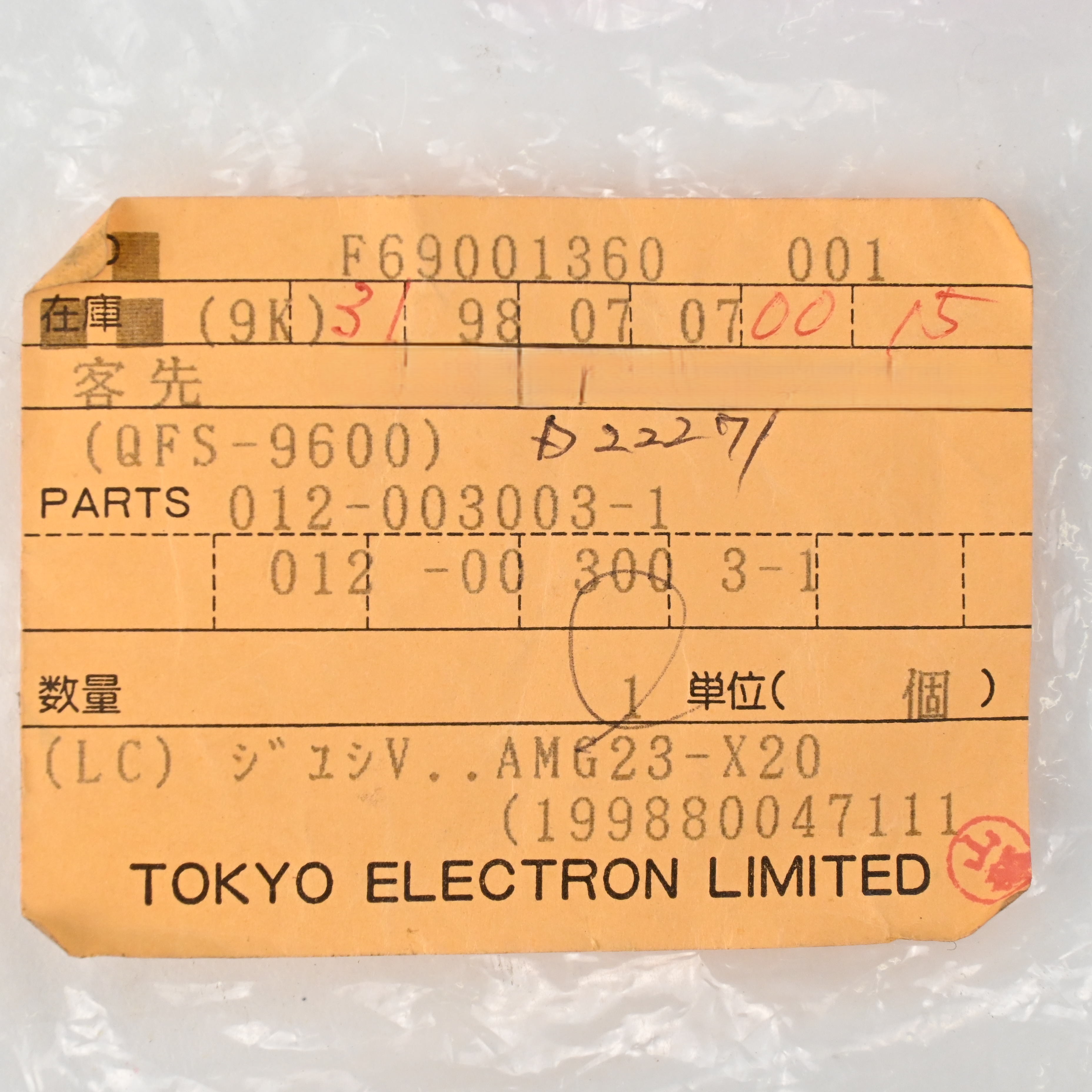 012-003003-1 樹脂バルブ 東京エレクトロン (TEL)