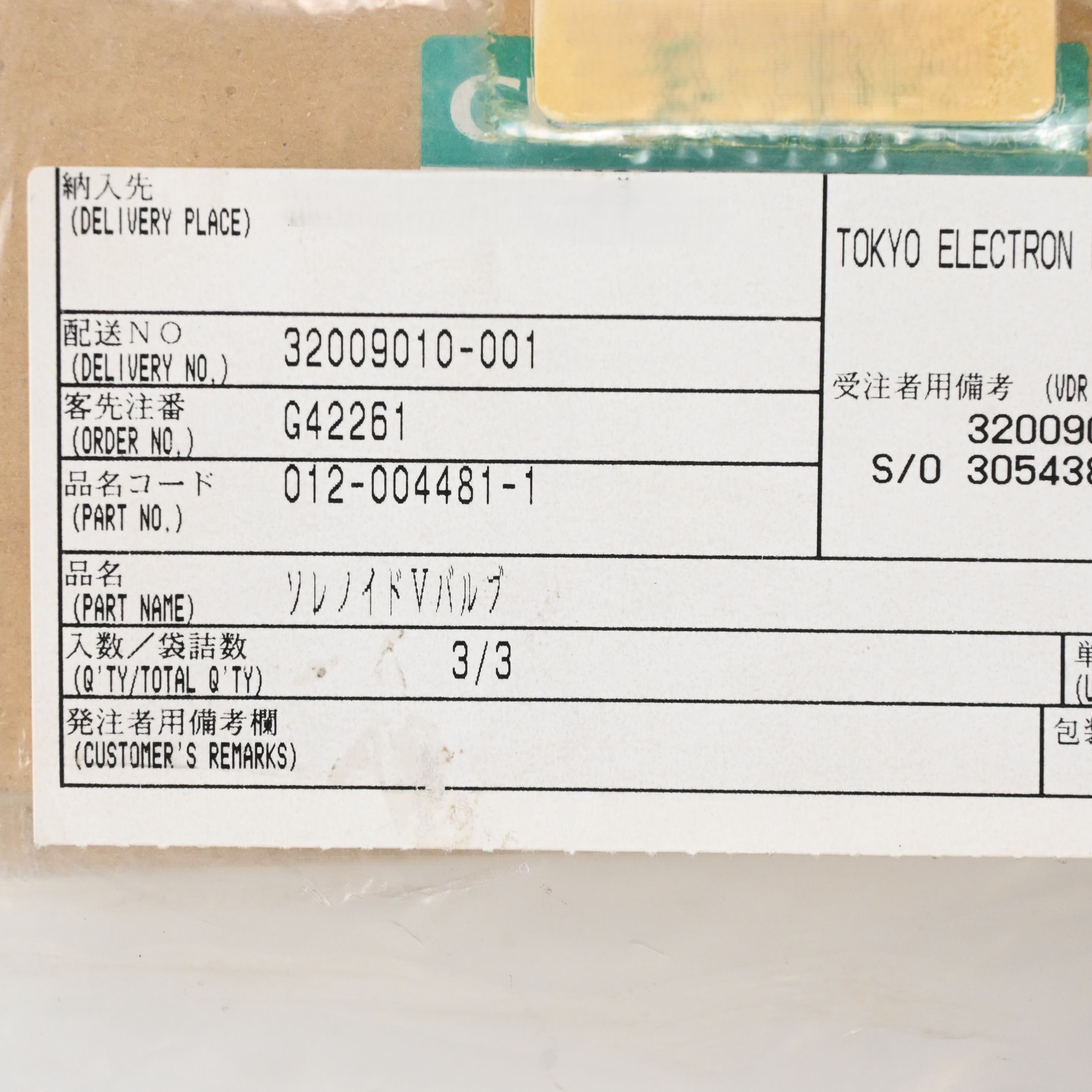 012-004481-1 ソレノイドバルブ 東京エレクトロン (TEL)