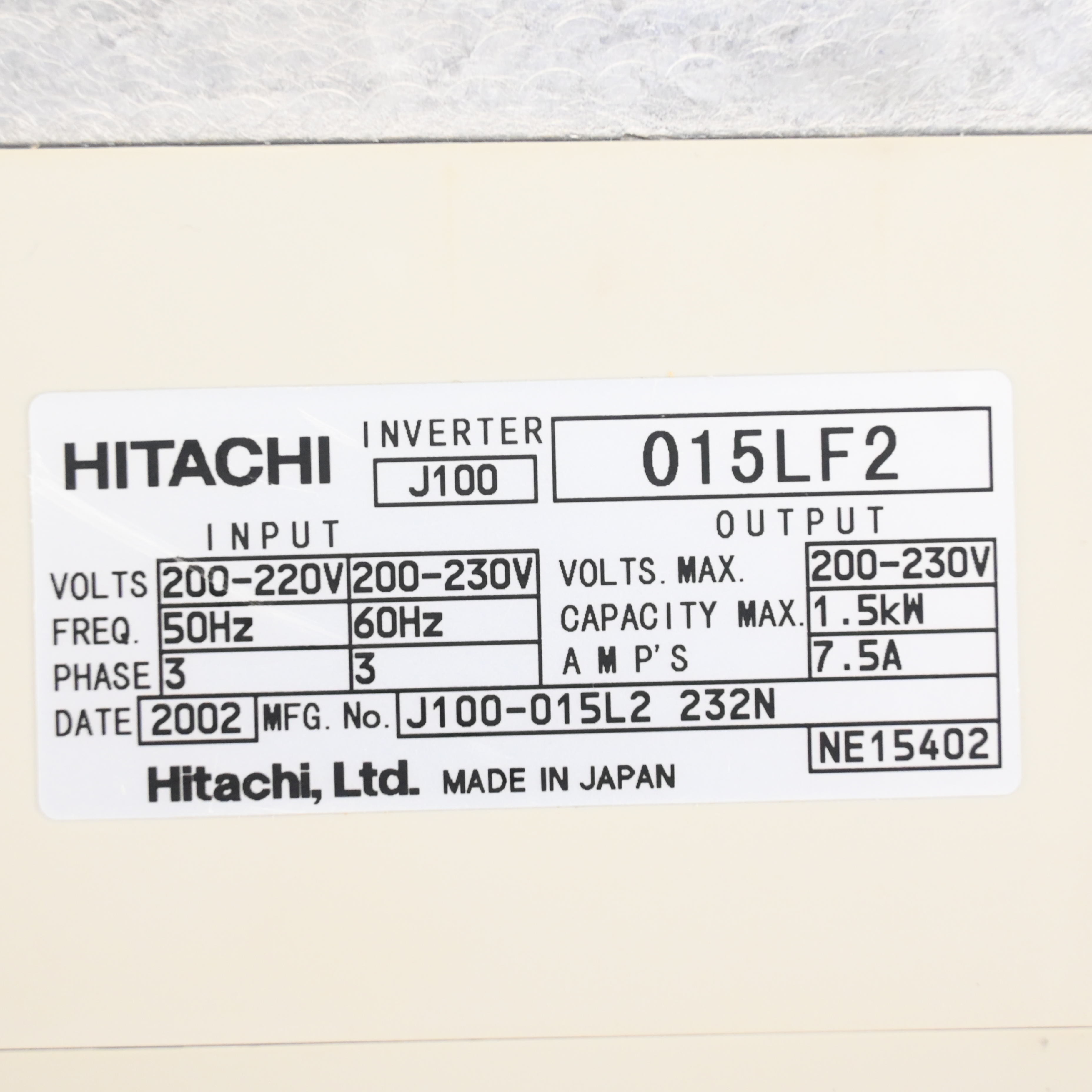J100-015LF2 インバーター 日立産機システム
