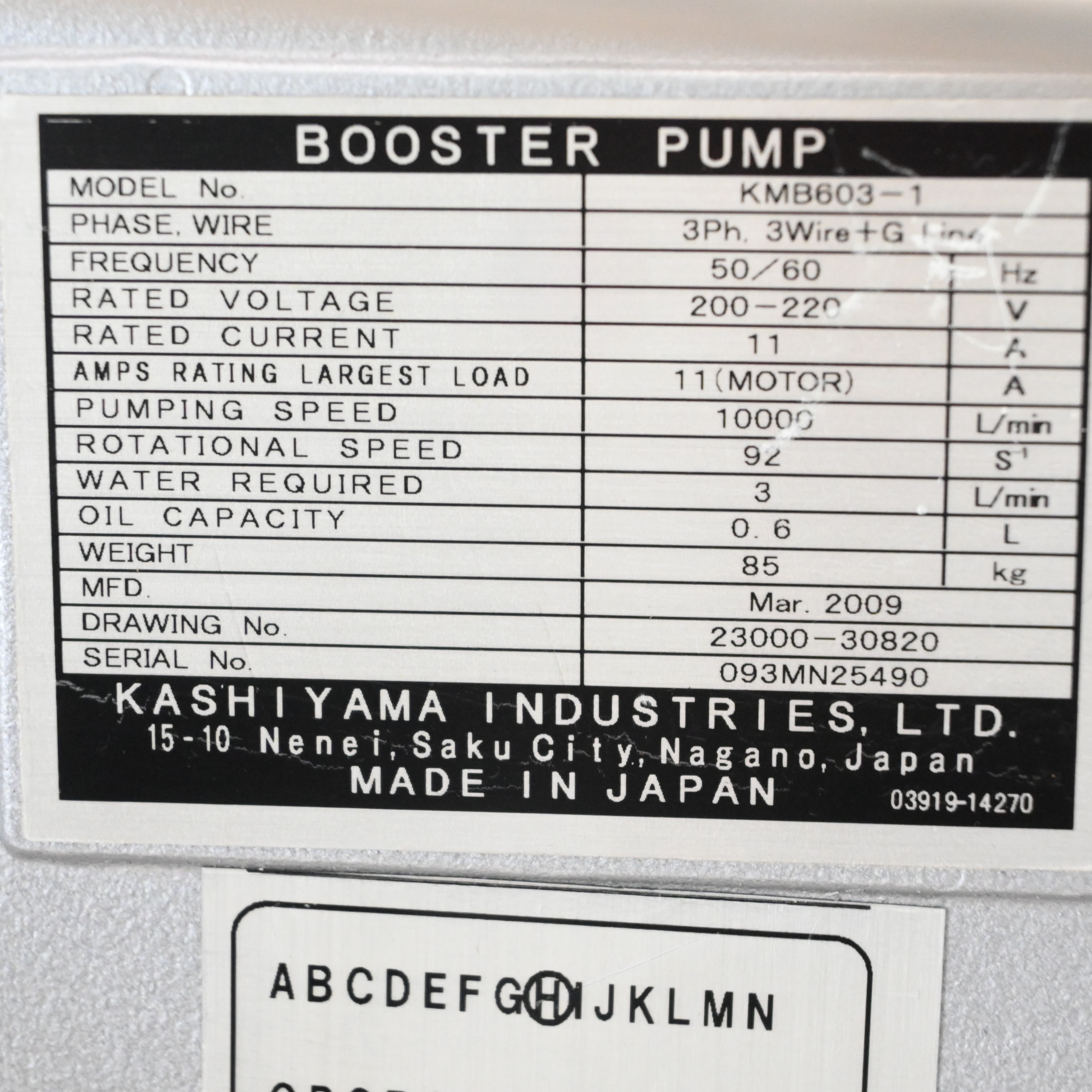 KMB603-1 メカニカルブースターポンプ KASHIYAMA