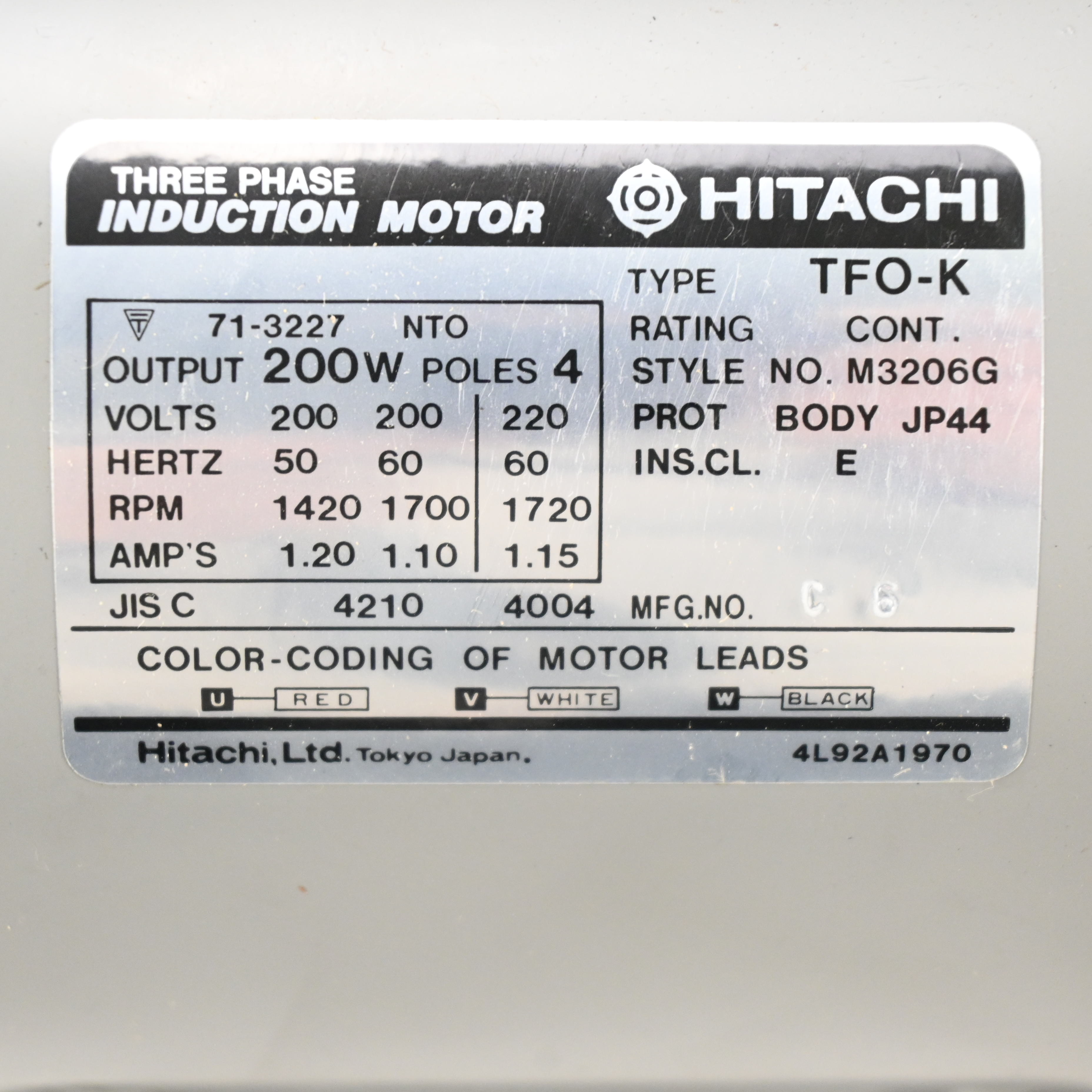 200W 4P TFO-K モーター HITACHI