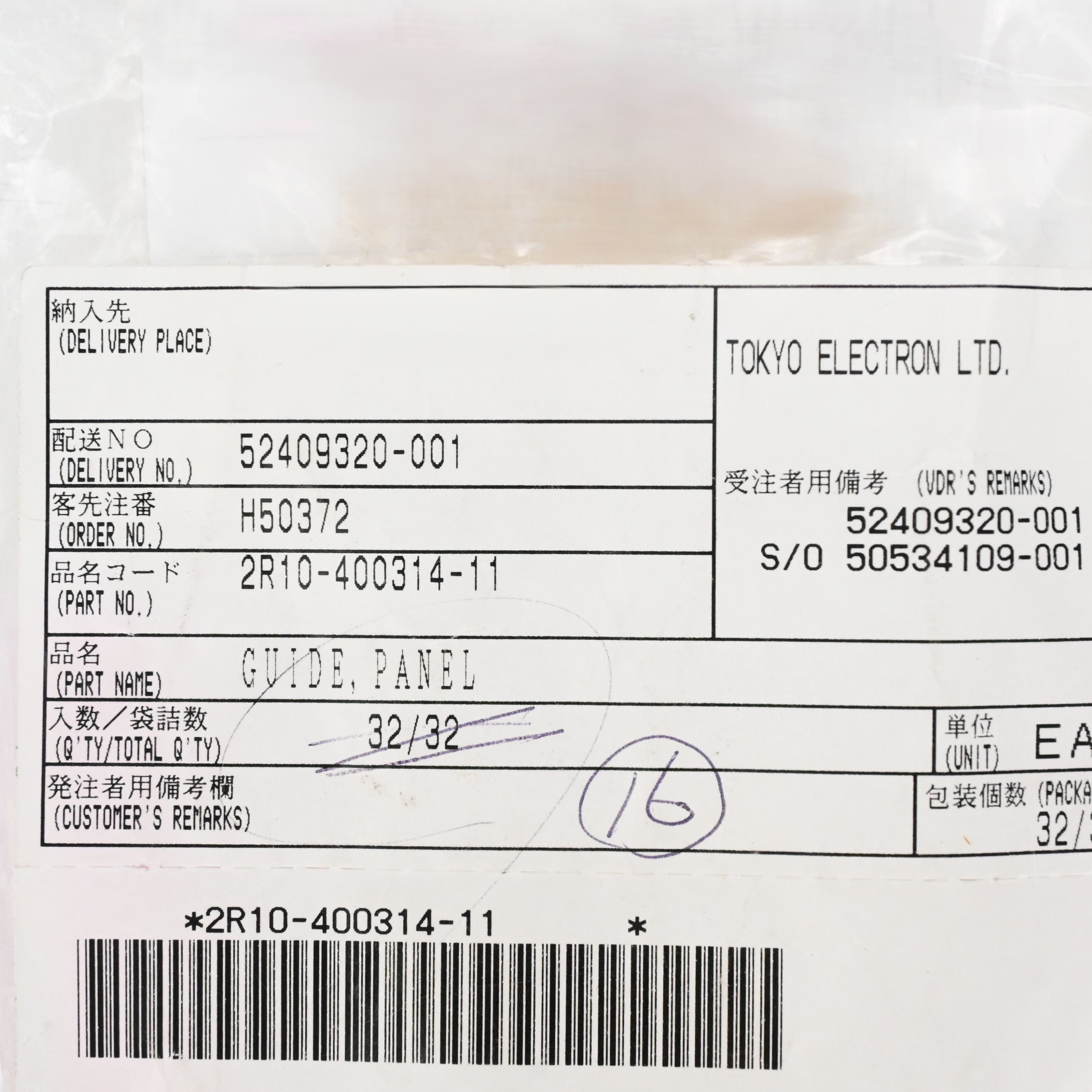 2R10-400314-11 GUIDE PANEL 東京エレクトロン (TEL)