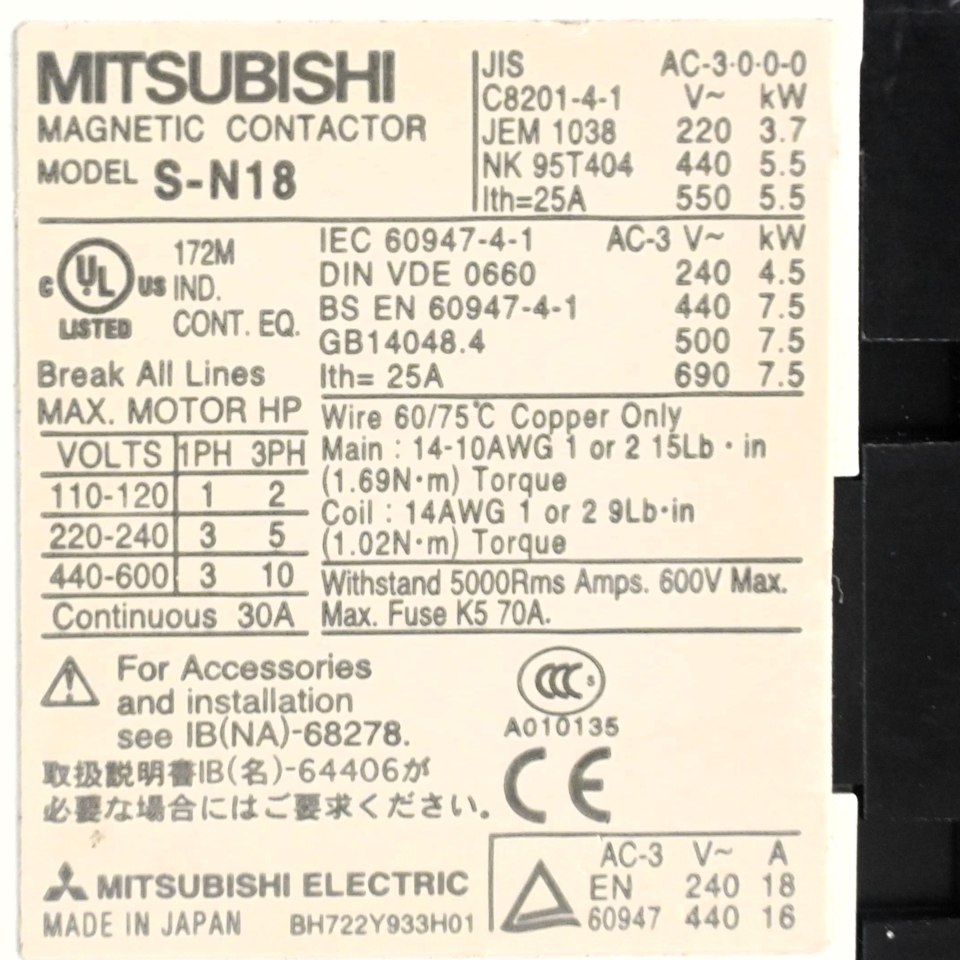S-N18 電磁接触機 MITSUBISHI