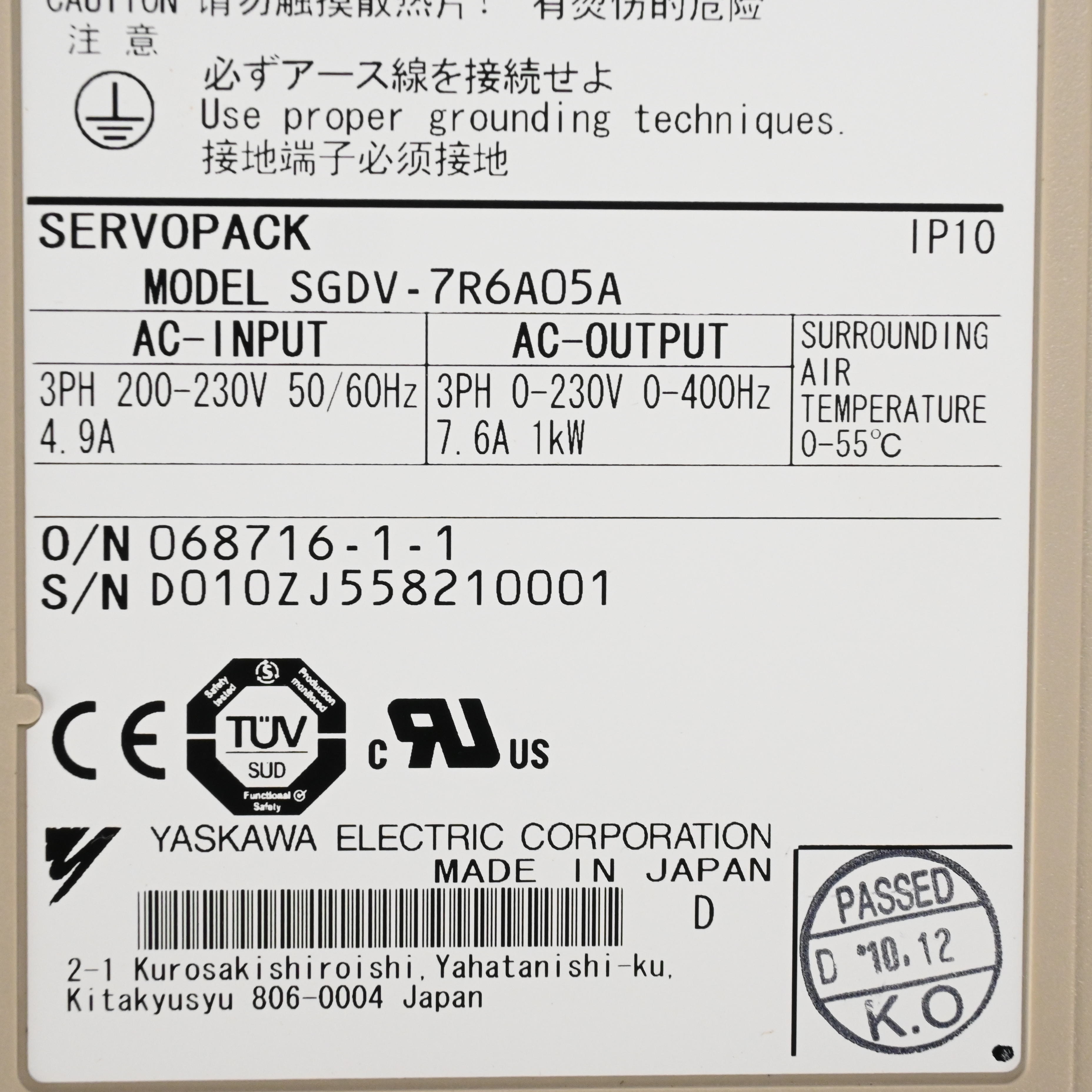SGDV-7R6A05A サーボパック YASKAWA
