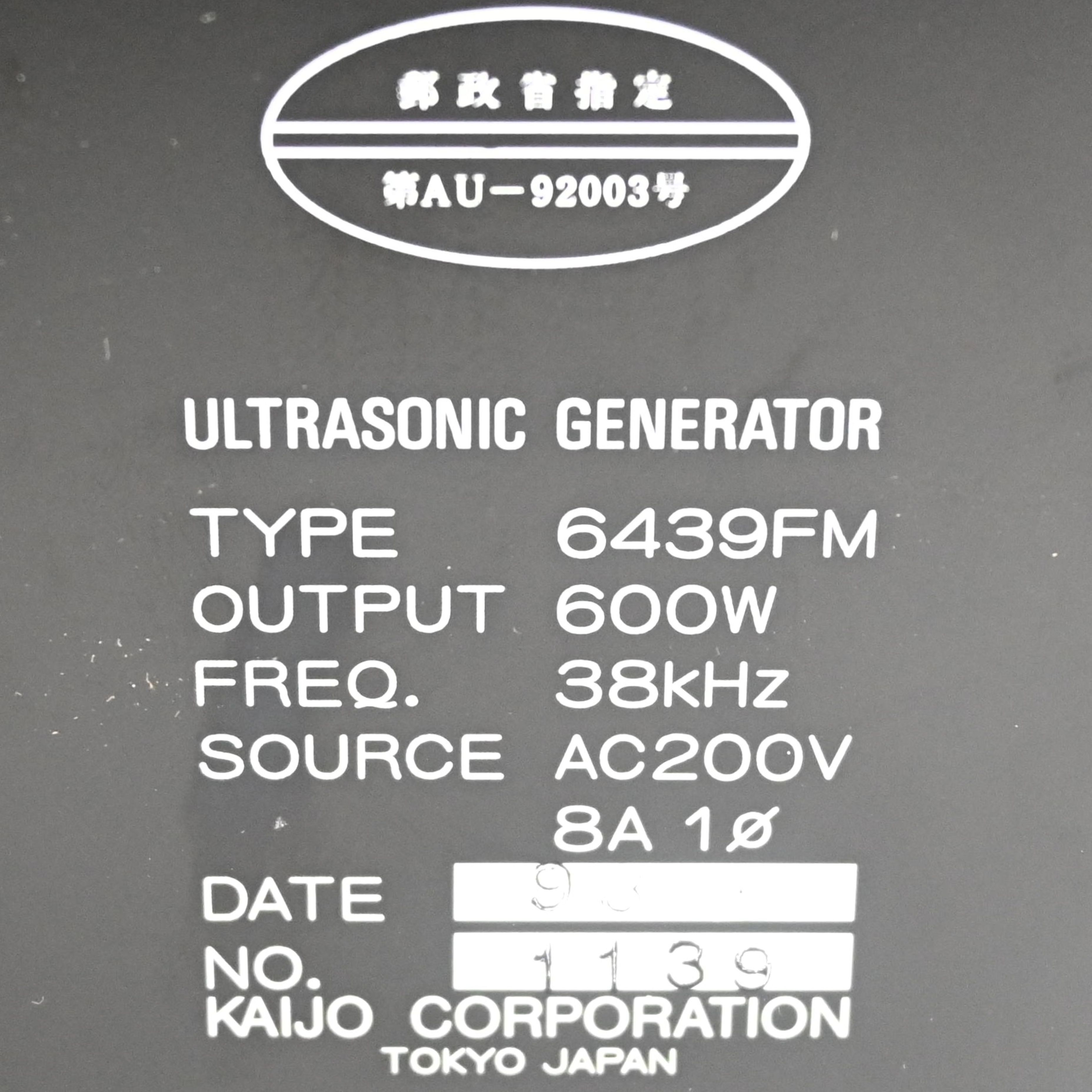 6439FA 超音波発振器 KAIJO