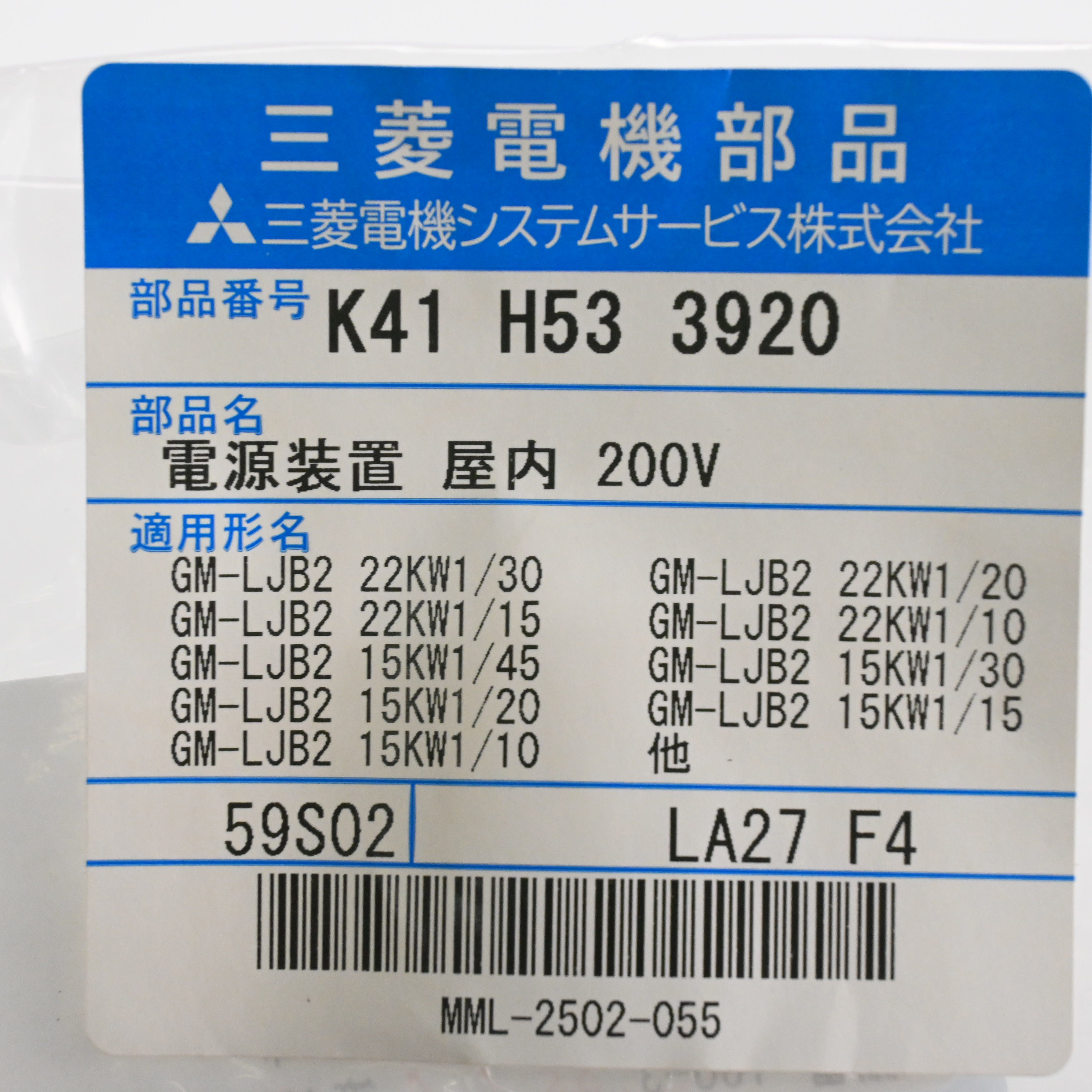 K41 H53 3920 モーター用電源装置 MITSUBISHI