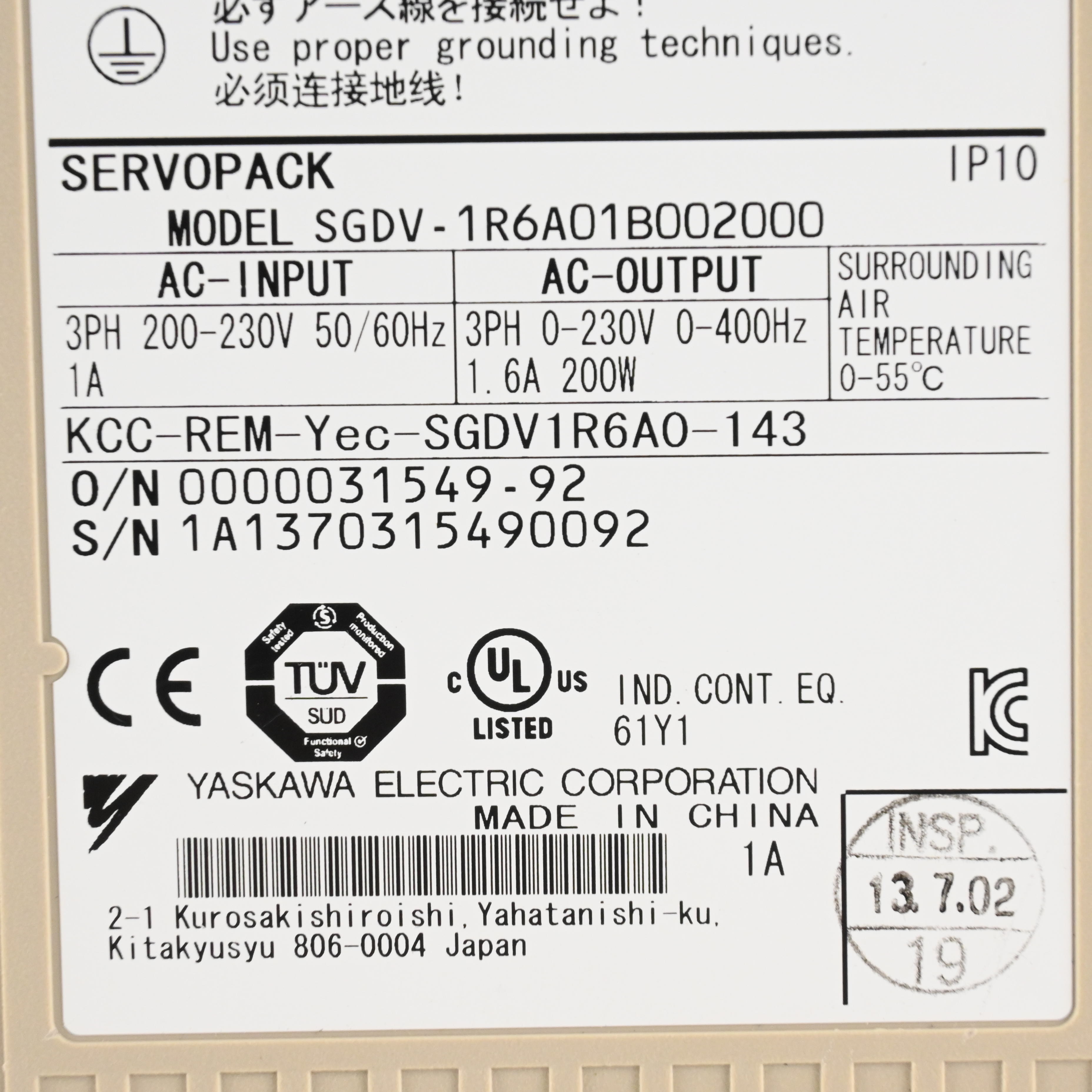 SGDV-1R6A01B002000 サーボパック YASKAWA