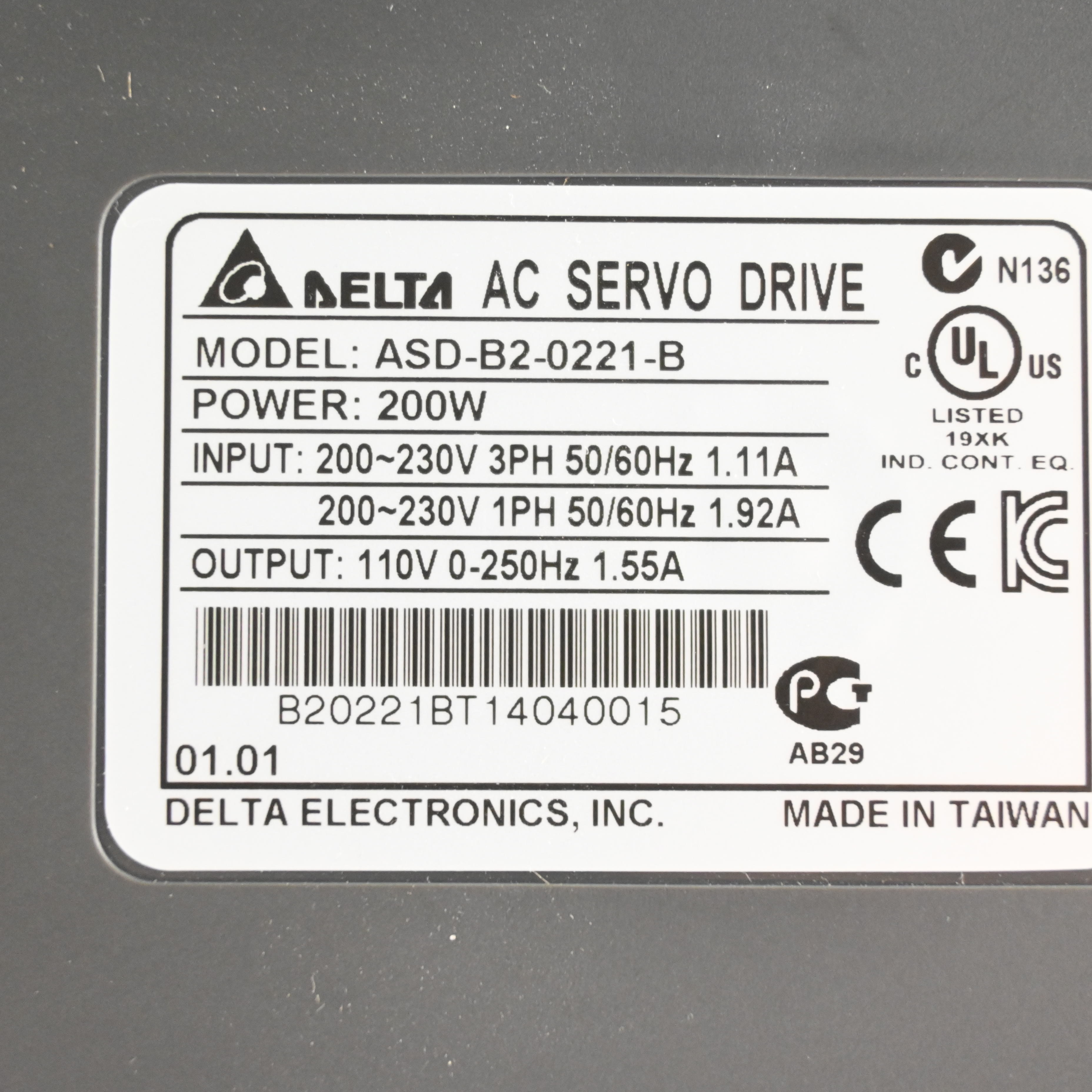 ASD-B2-0221-B ACサーボドライバー デルタ電子