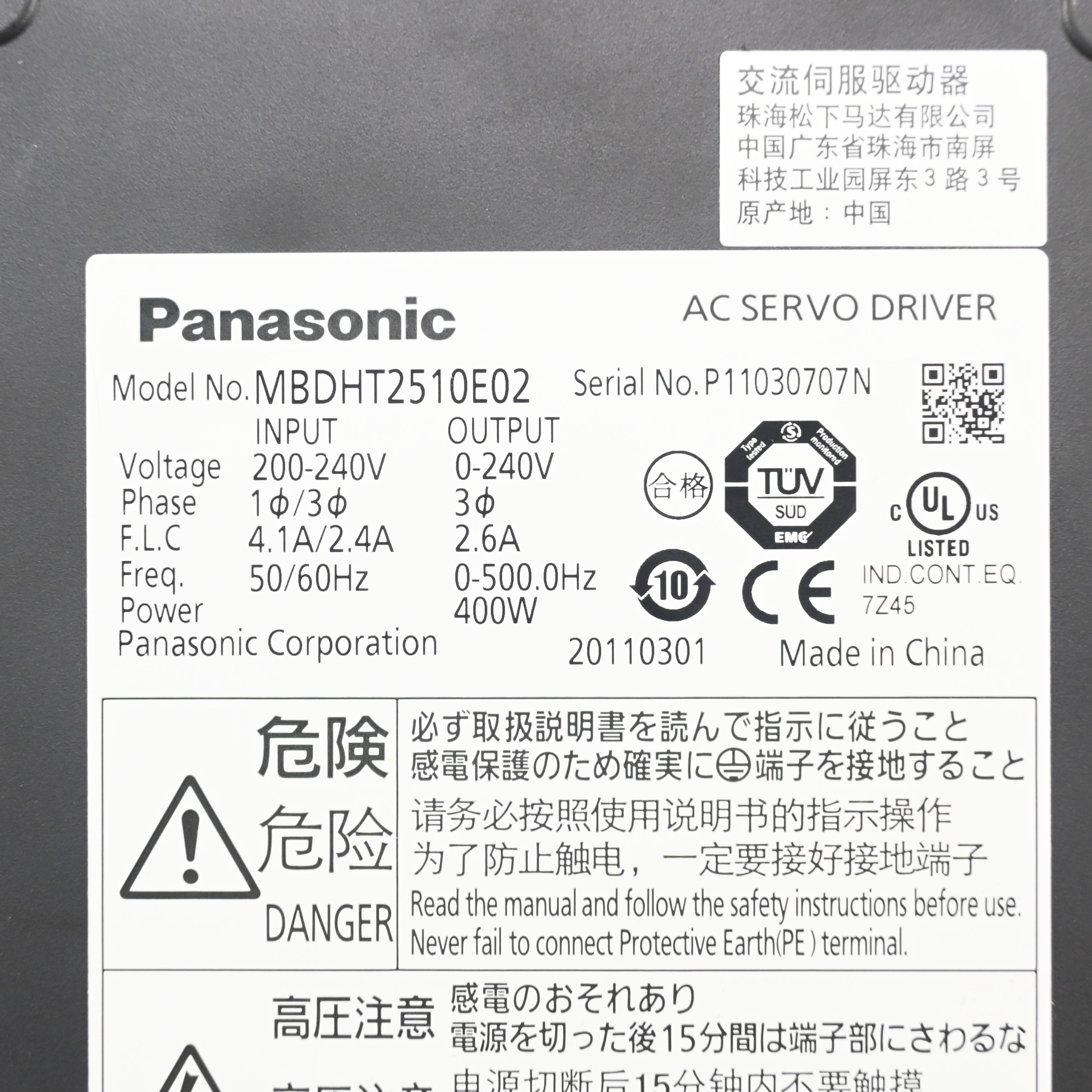 MBDHT2510E02 ACサーボドライバー Panasonic