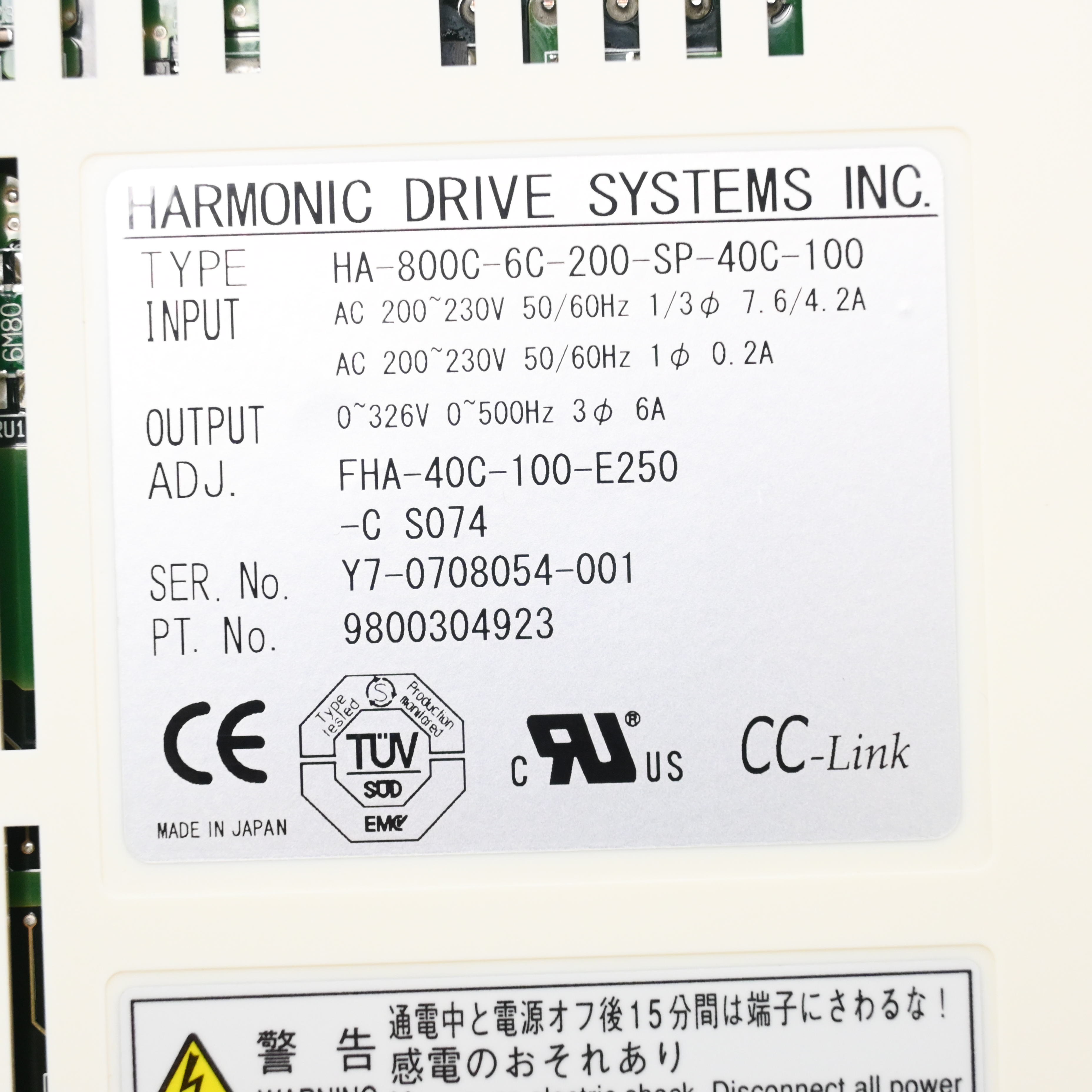 HA-800C-6C-200-SP-40C-100 サーボコントロールユニット HARMONIC DRIVE