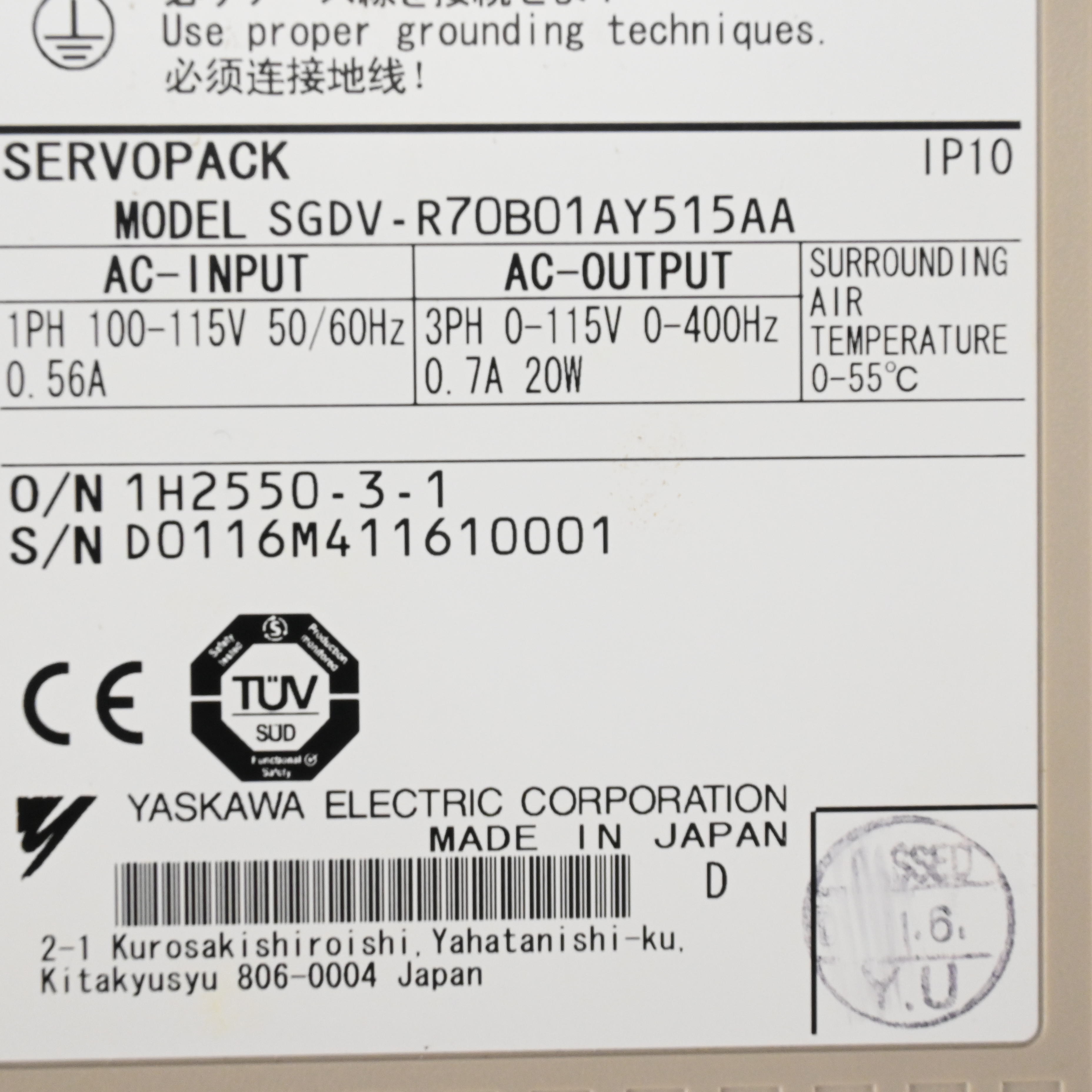 SGDV-R70B01AY515AA サーボパック YASKAWA