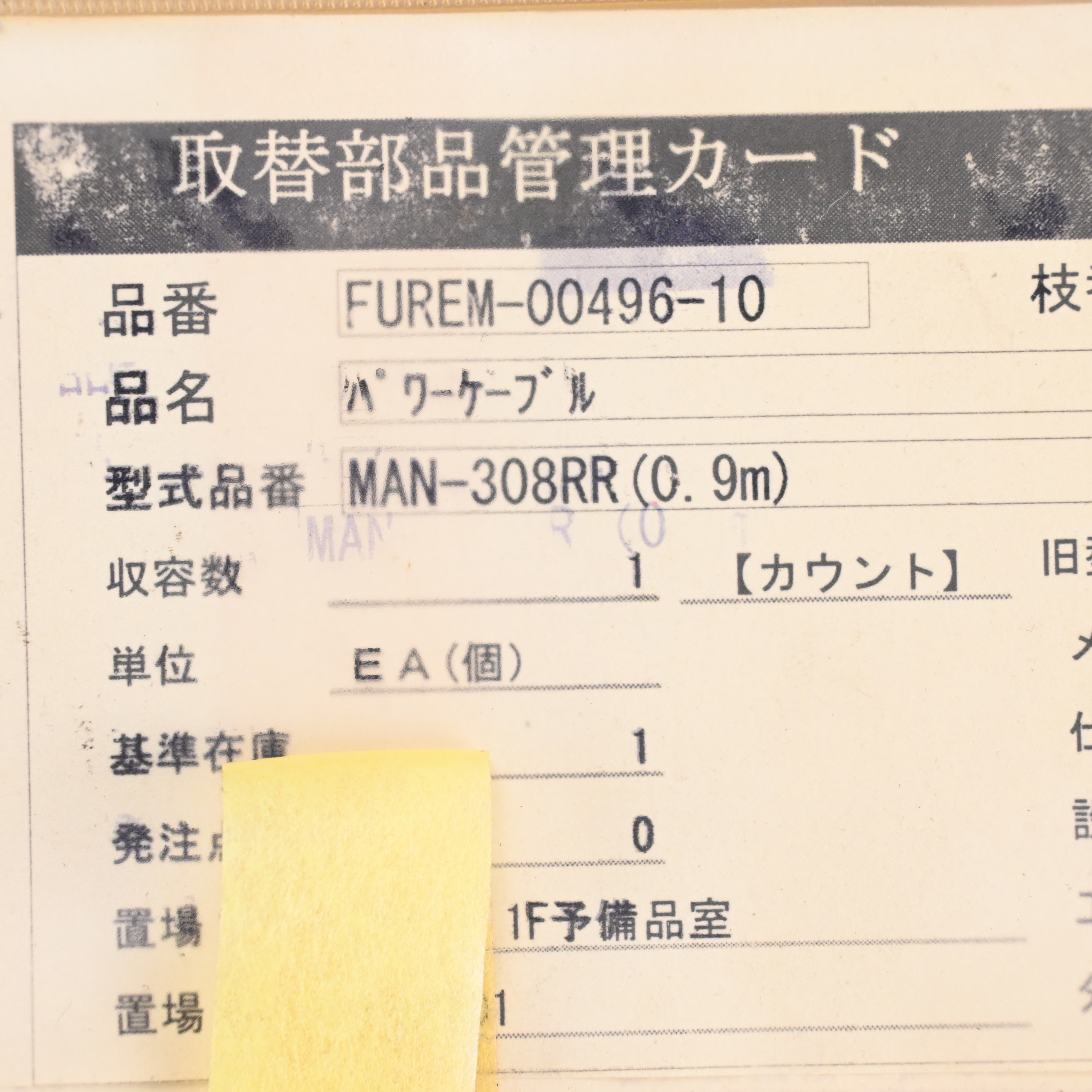 MAN-308RR(0.9M) パワーケーブル ナストーア