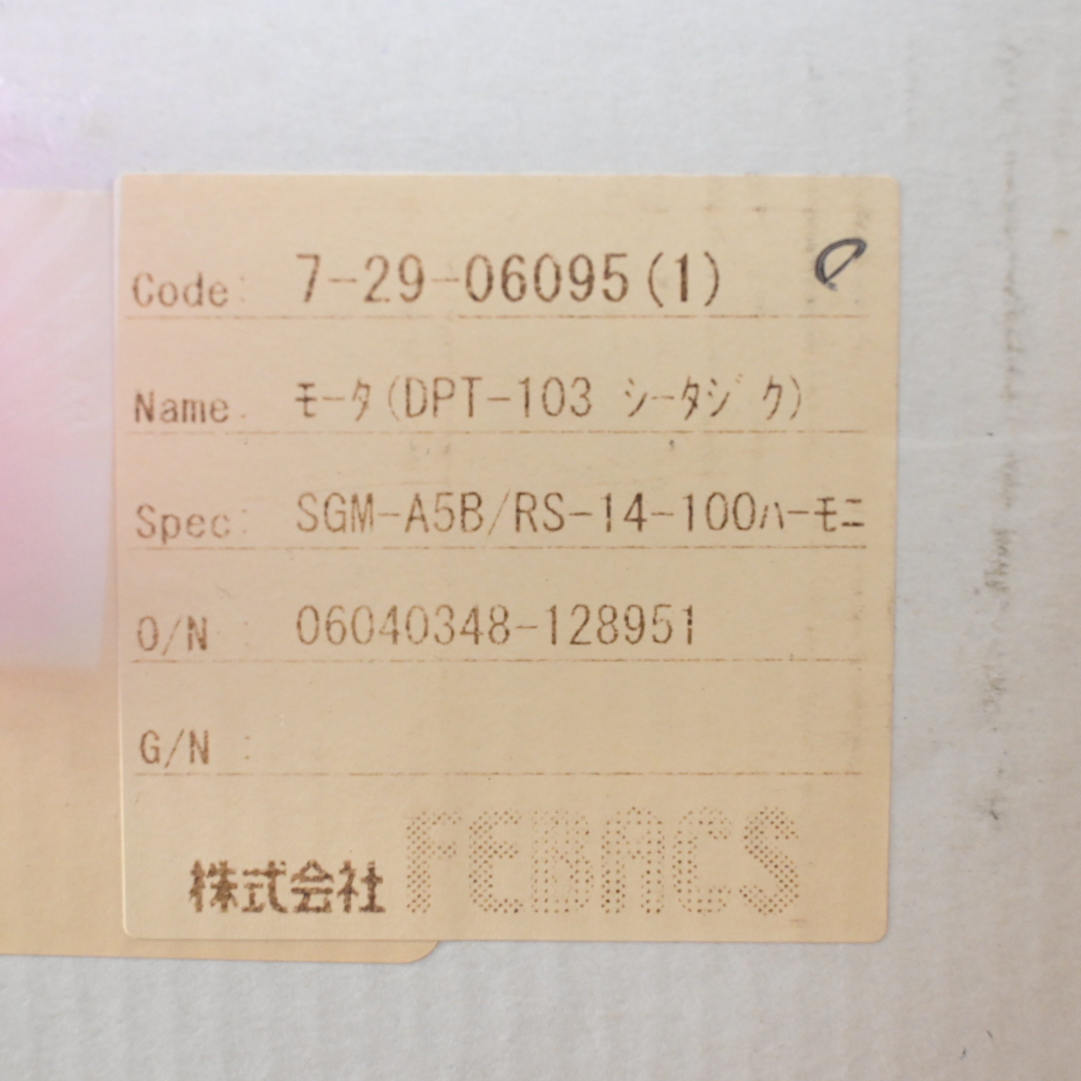 SGM-A5B RS-14-100 モータ(DPT-103 シータジグ) FEBACS