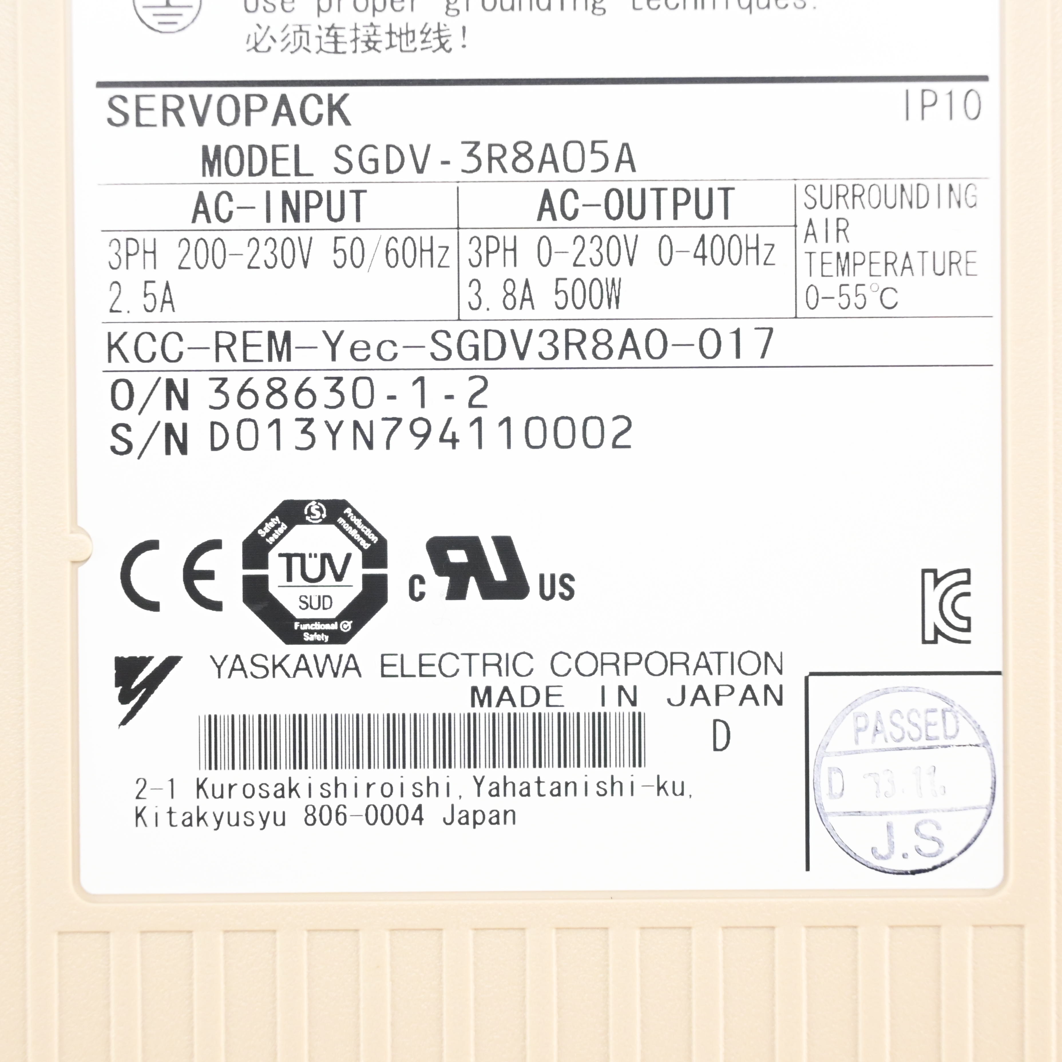 SGDV-3R8A05A サーボパック YASKAWA