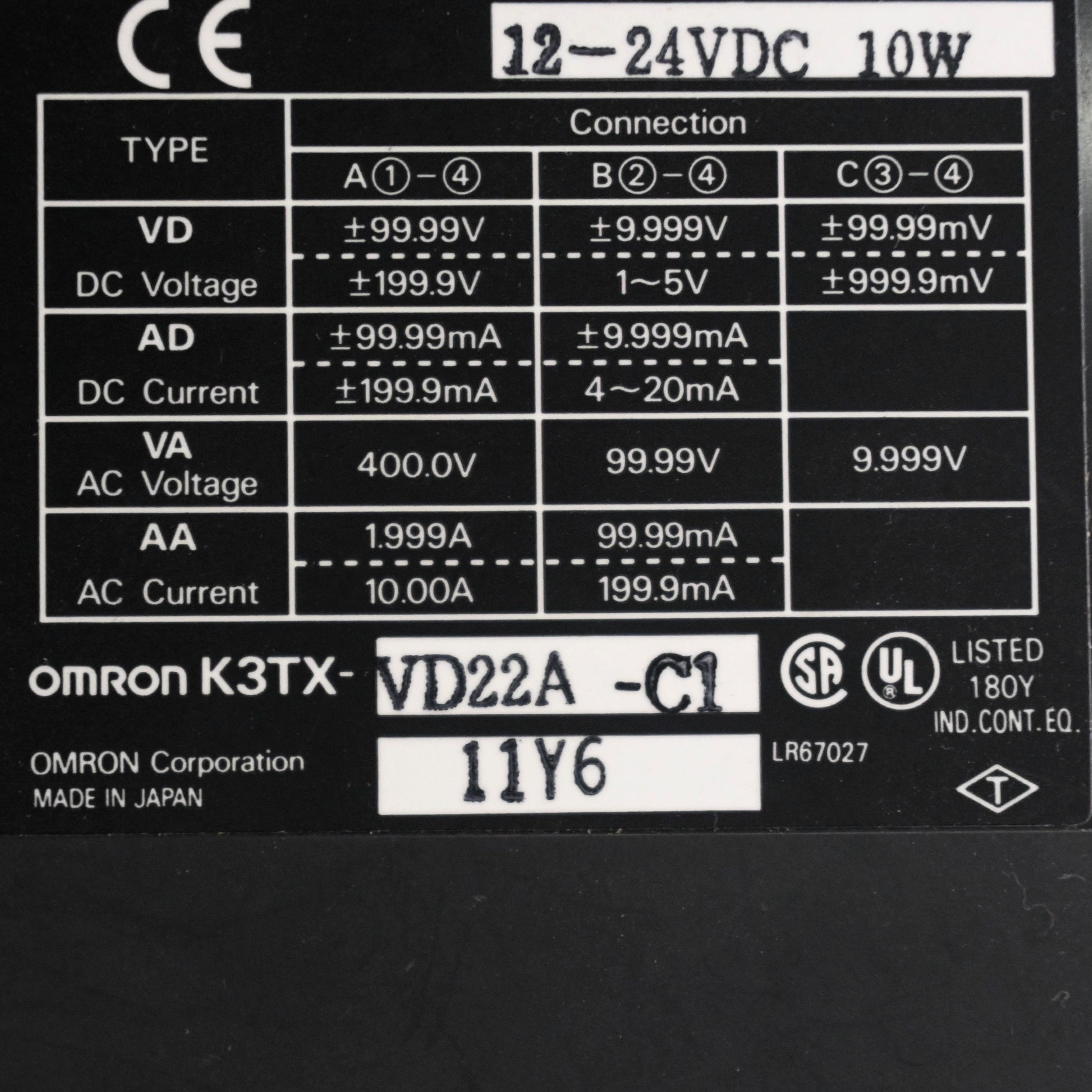 K3TX-VD22A-C1 デジタルパネルメーター OMRON