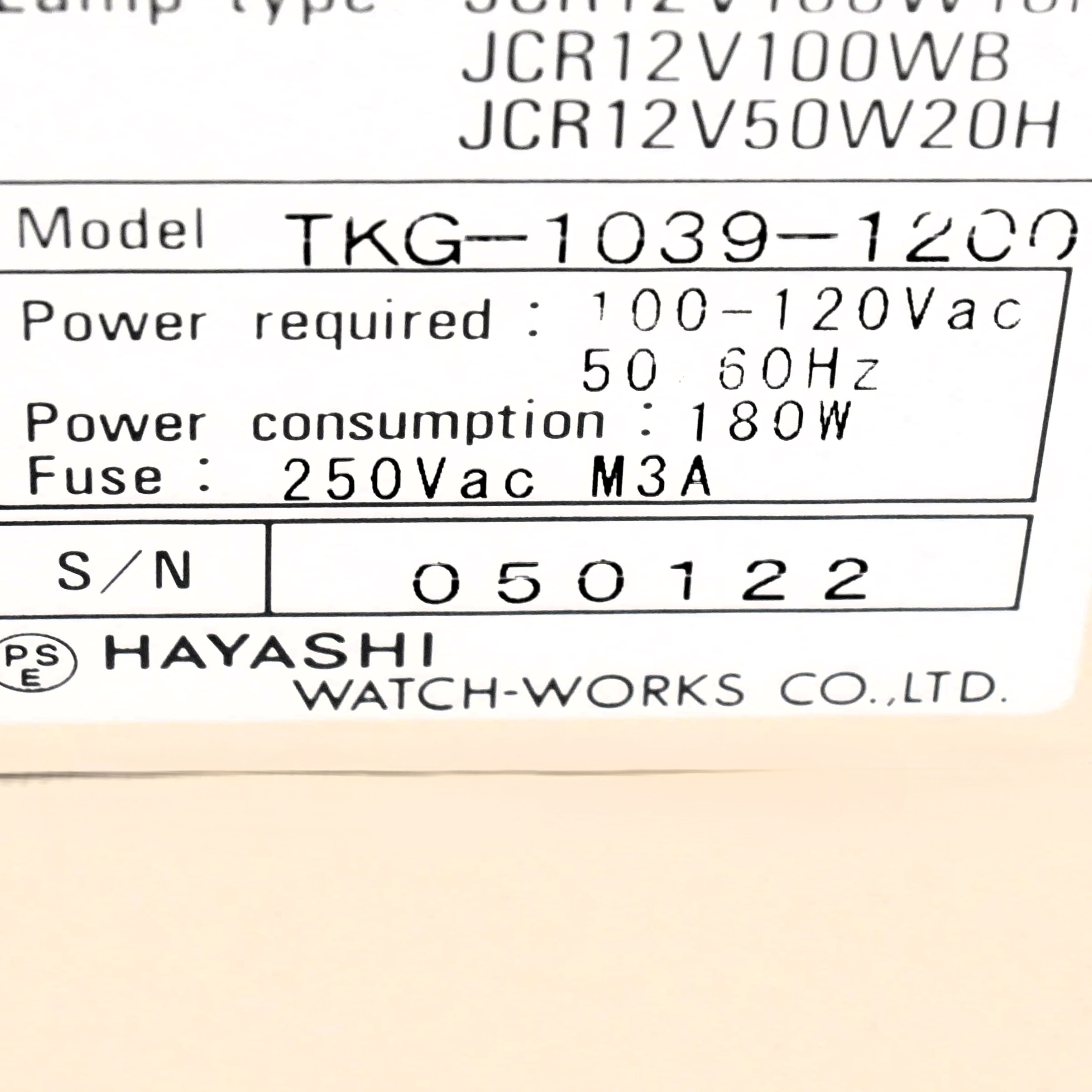 TKG-1039-1200 カメラ光源 林時計