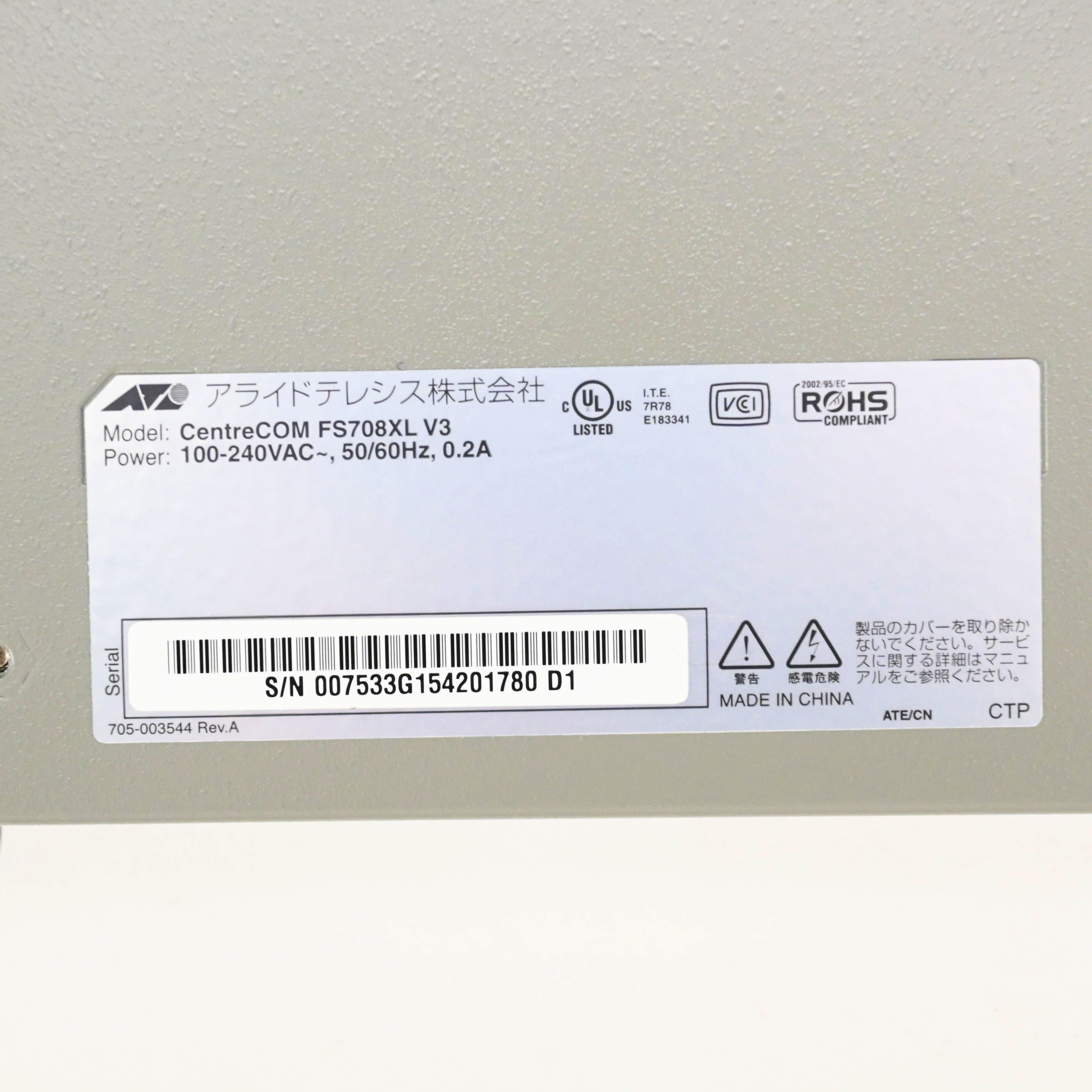 CENTRECOM FS708XL V3 レイヤー2スイッチ Allied Telesis