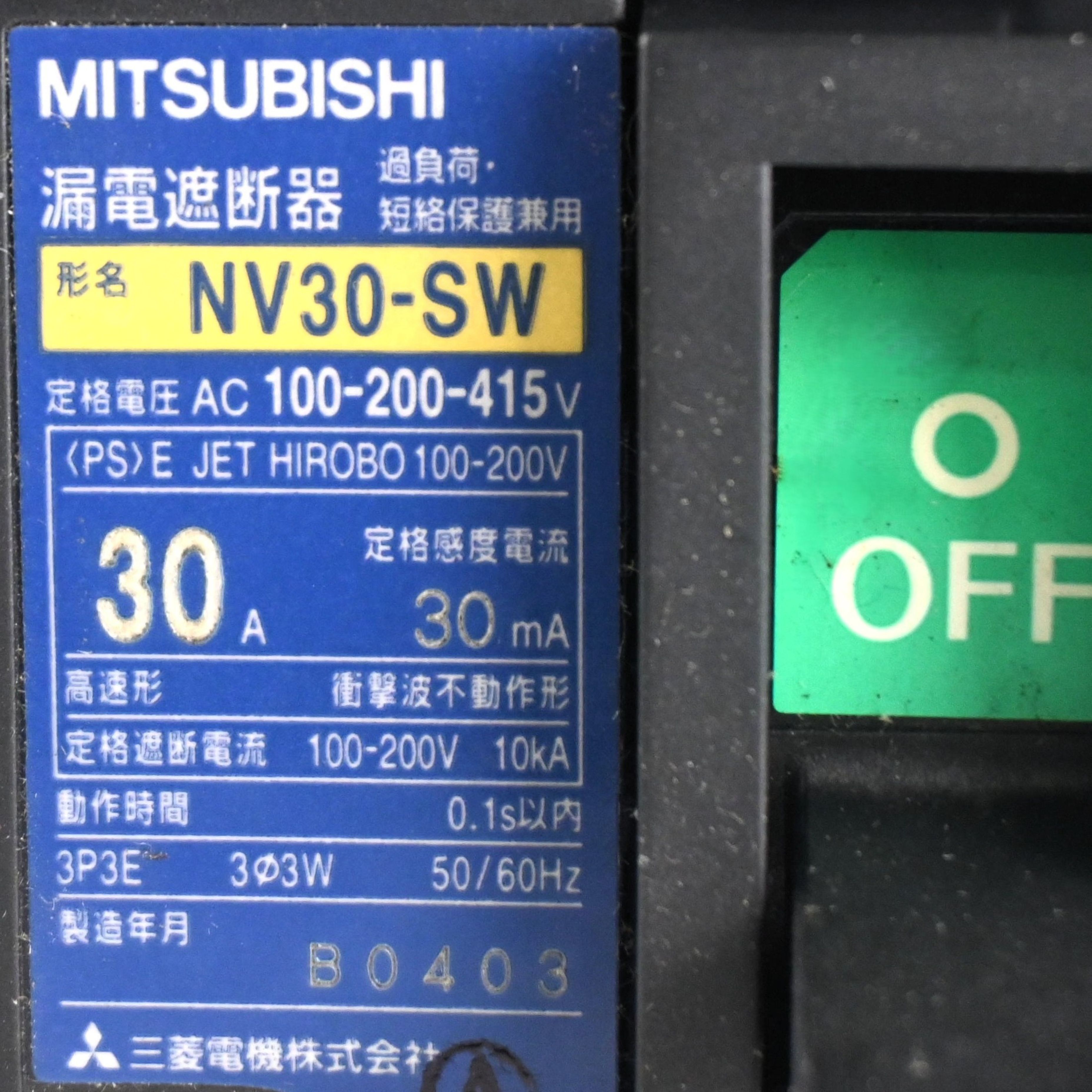 NV30-SW 3P 30A 漏電遮断器 MITSUBISHI
