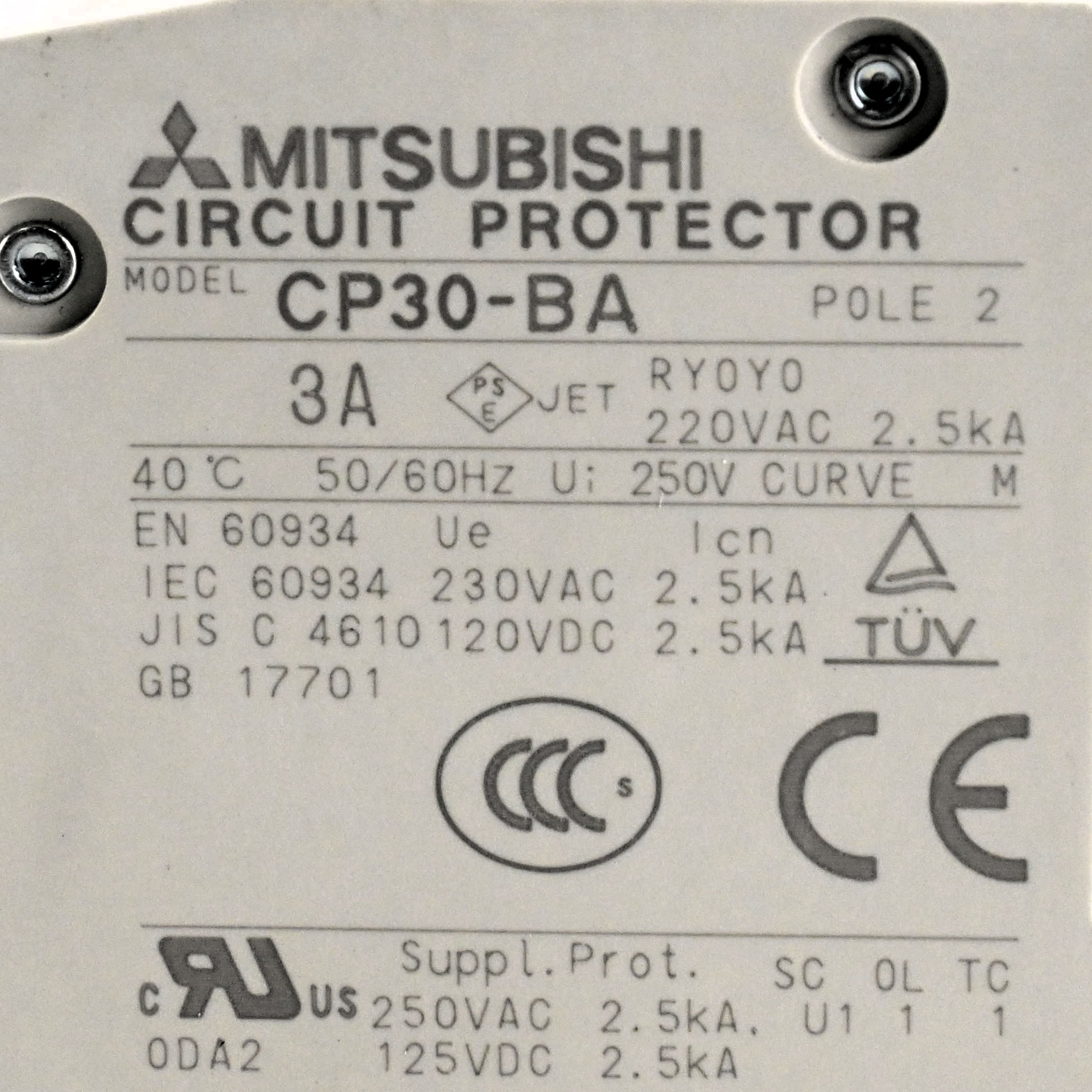 CP30-BA 2P 3A 漏電遮断器 MITSUBISHI