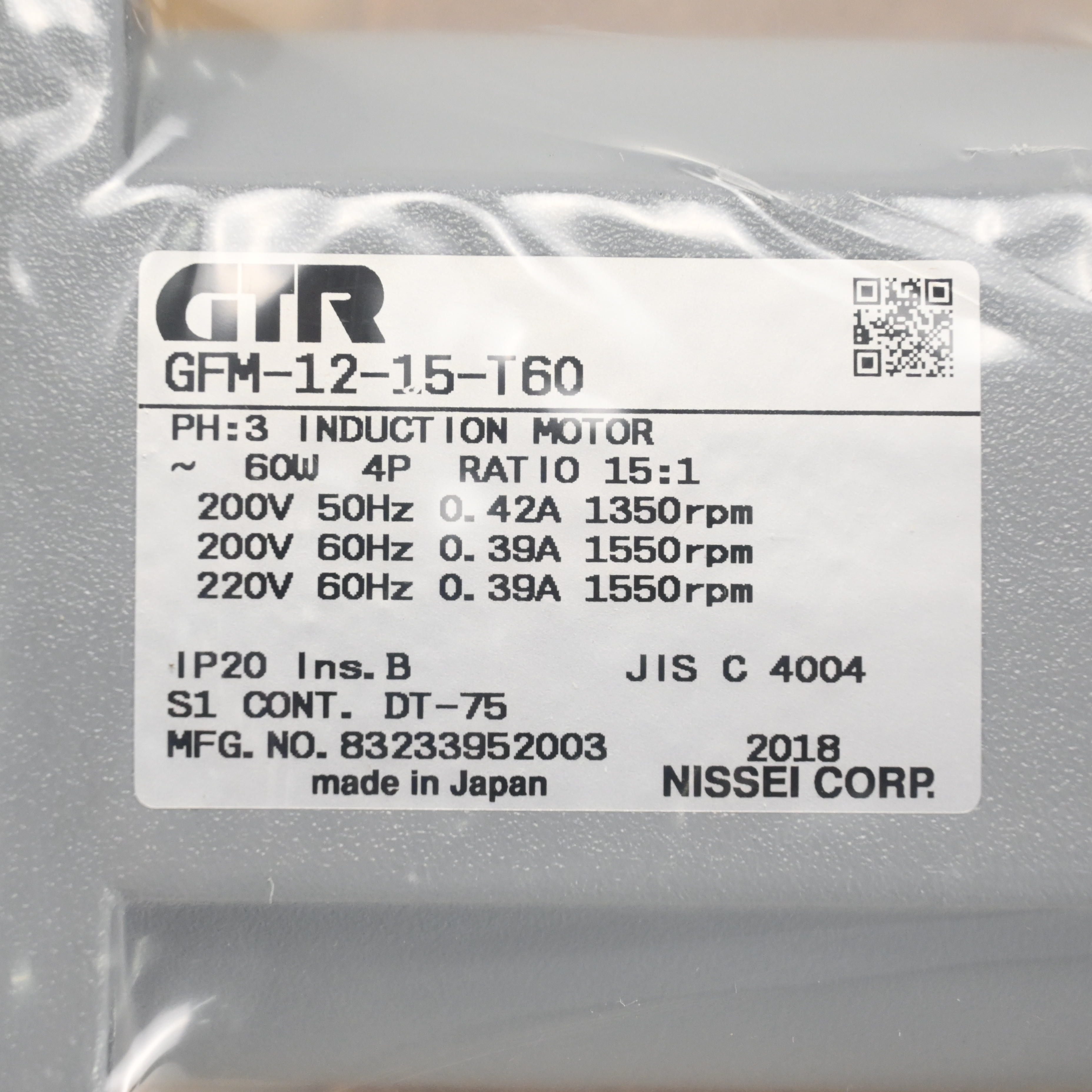 GFM-12-15-T60 ギヤードモーター NISSEI