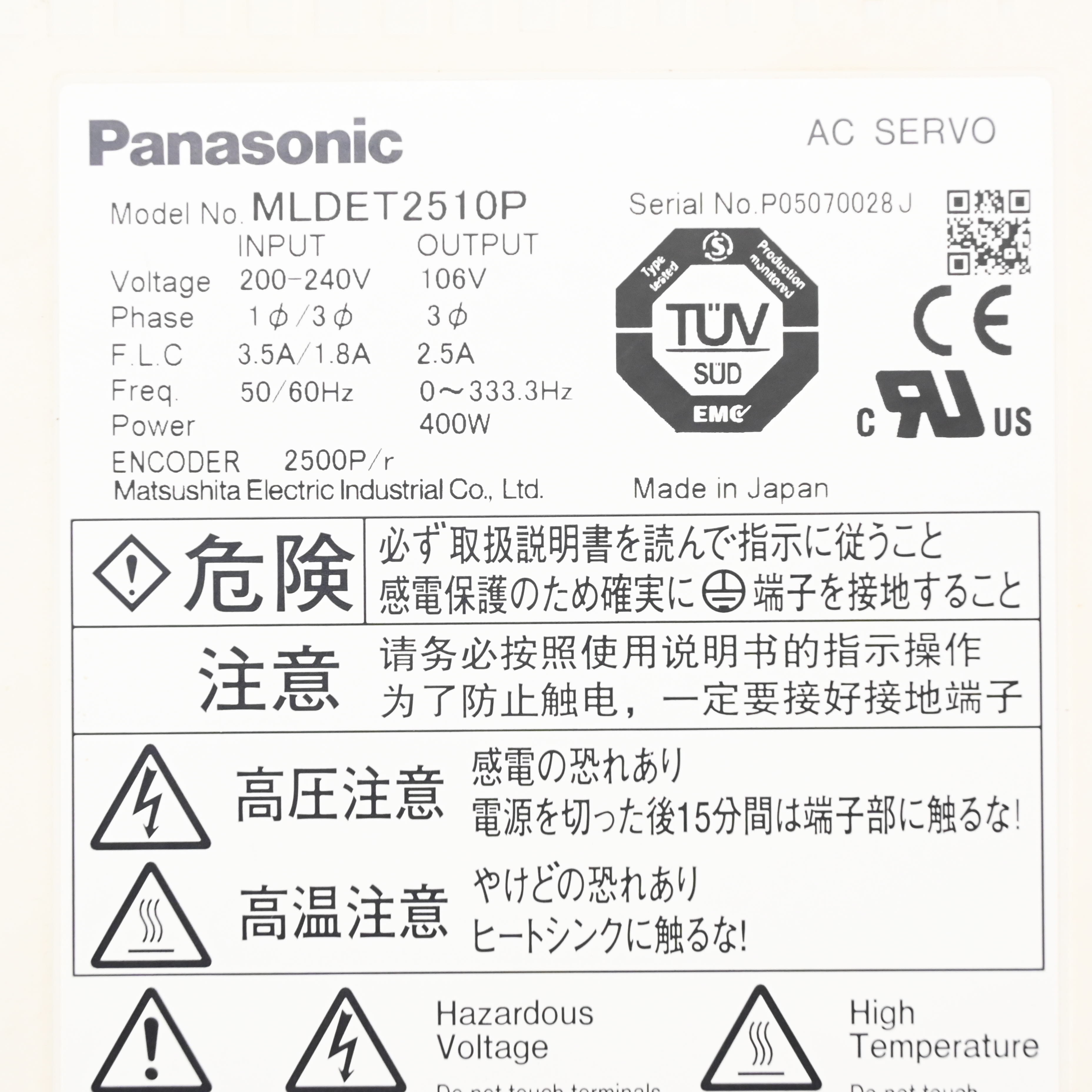 MLDET2510P ACサーボドライバー Panasonic